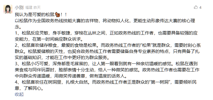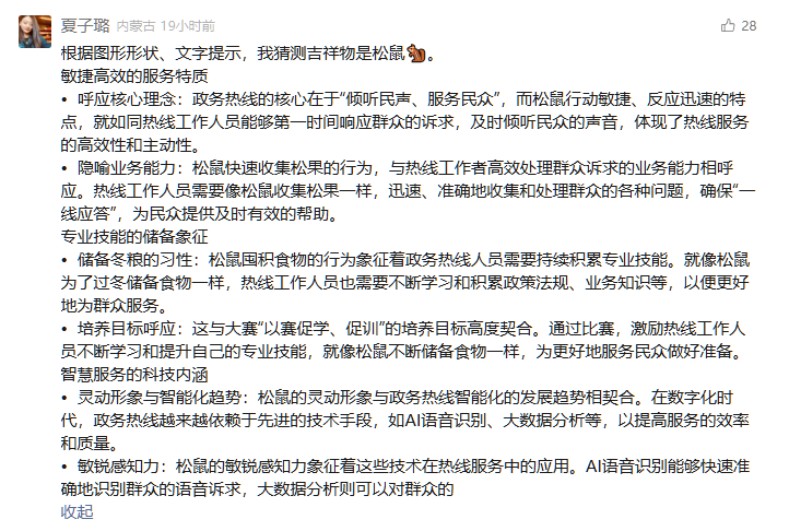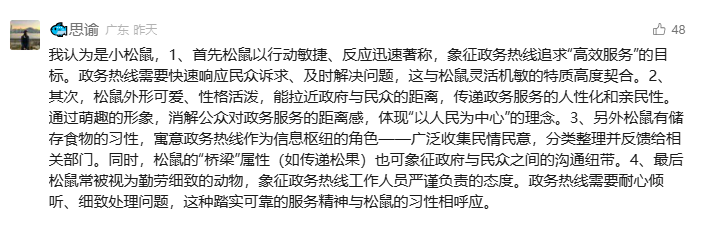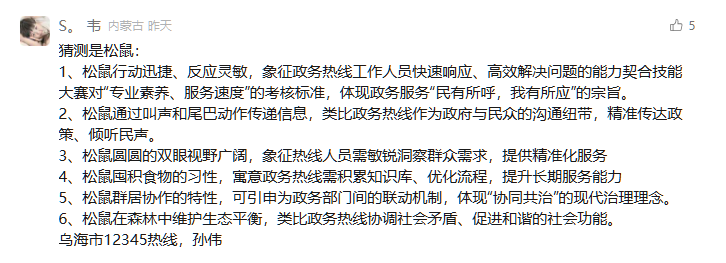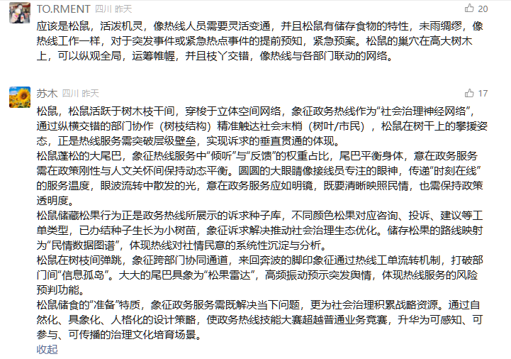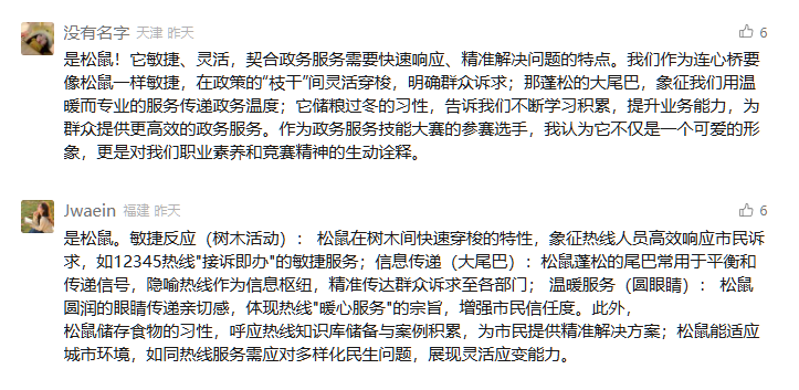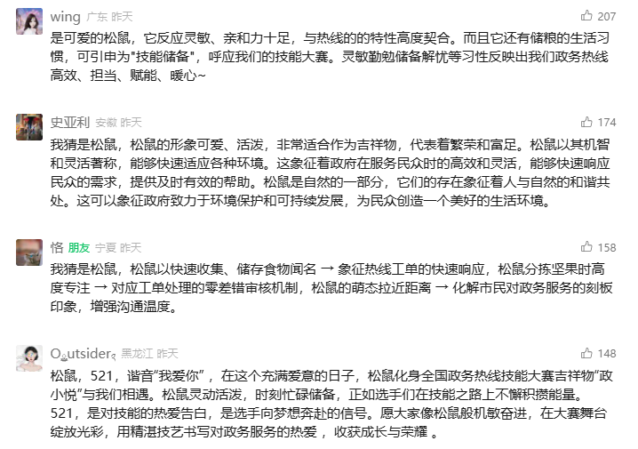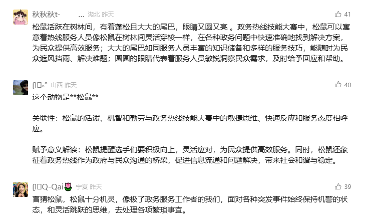 本次选出的30名政务热线人不仅正确猜出了吉祥物的松鼠形象,还赋予了生动、深刻的意义解读,展现了政务热线人的智慧与专业。